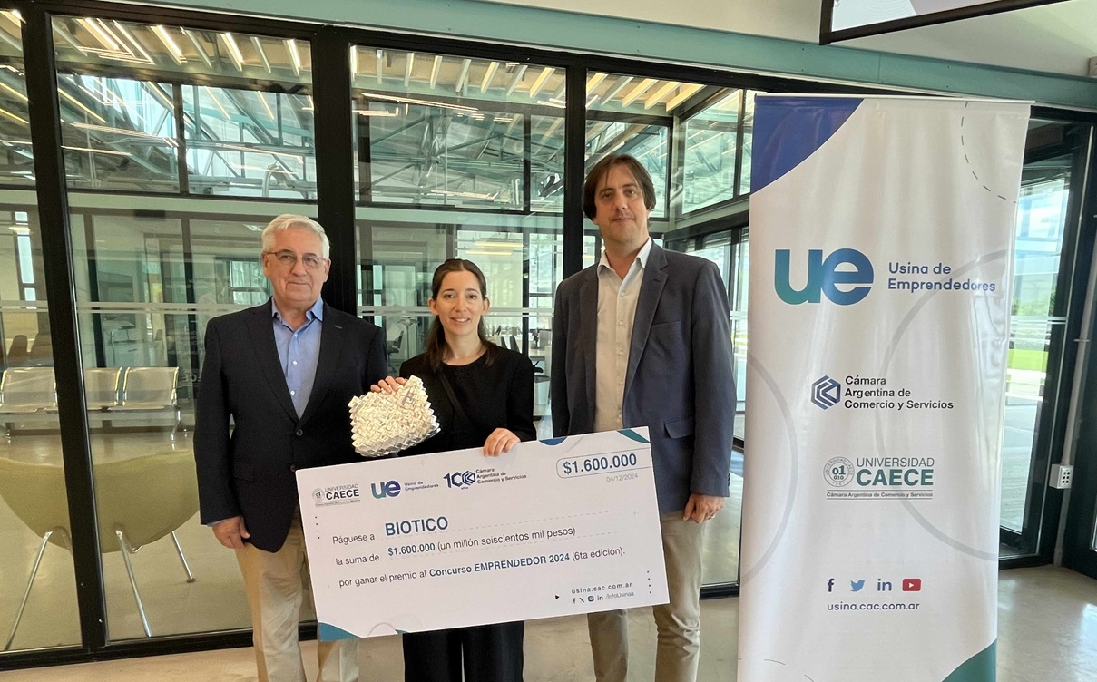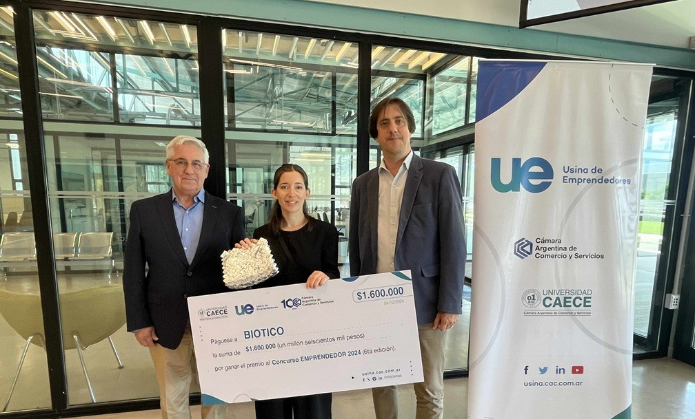 El primer lugar fue para Biotico, un emprendimiento que transforma residuos domésticos en textiles sostenibles e impulsa la inclusión laboral de personas con discapacidad intelectual.